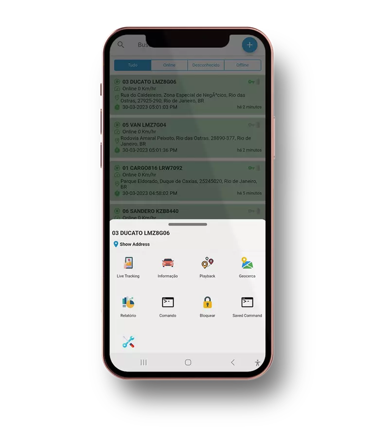 Acompanhe a localização exata dos seus veículos 24/7, com atualizações instantâneas e dados precisos na palma da mão.
